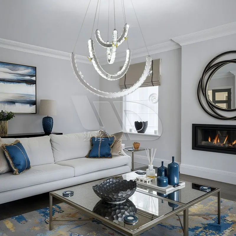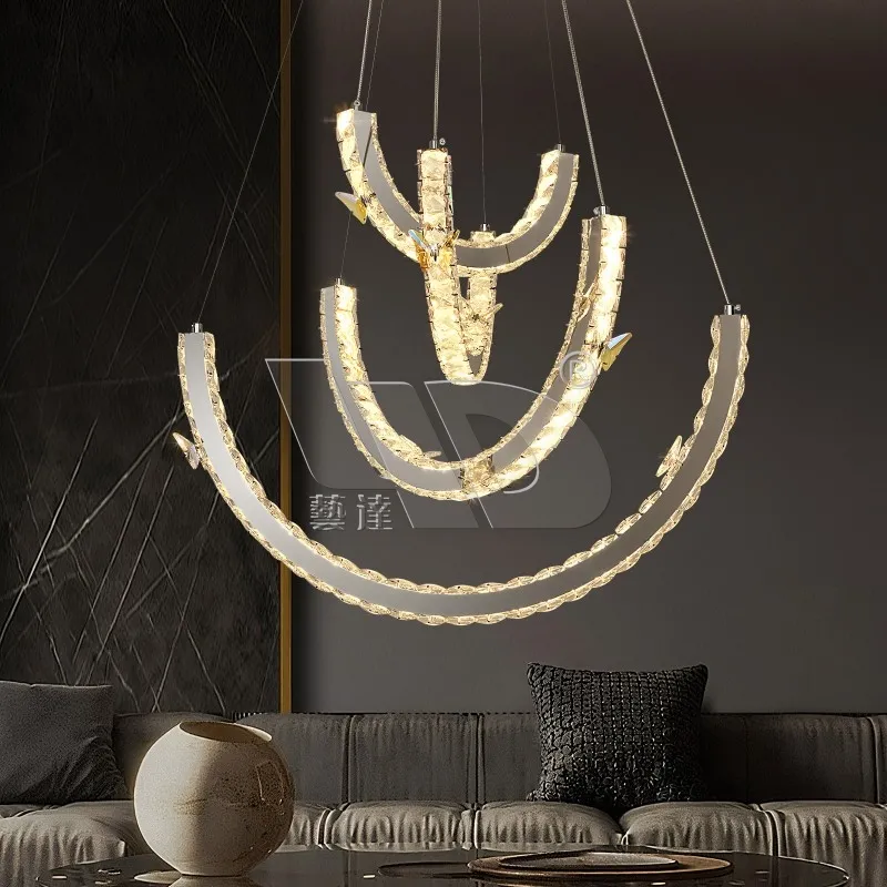 Design & Vibe: 4 nested, flowing curved layers (stacked for soft depth, no clutter) lined with chunky faceted glass, plus subtle iridescent butterfly accents. Made for spacious spots—large living rooms, formal dining areas, or upscale entryways—adding a statement that feels intentional (not loud).